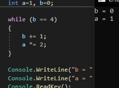 Так как условие неверно, а точнее b не равняется 4. а равняется нулю. то условие неверное и не производиться никаких операций, а значит a остается 1