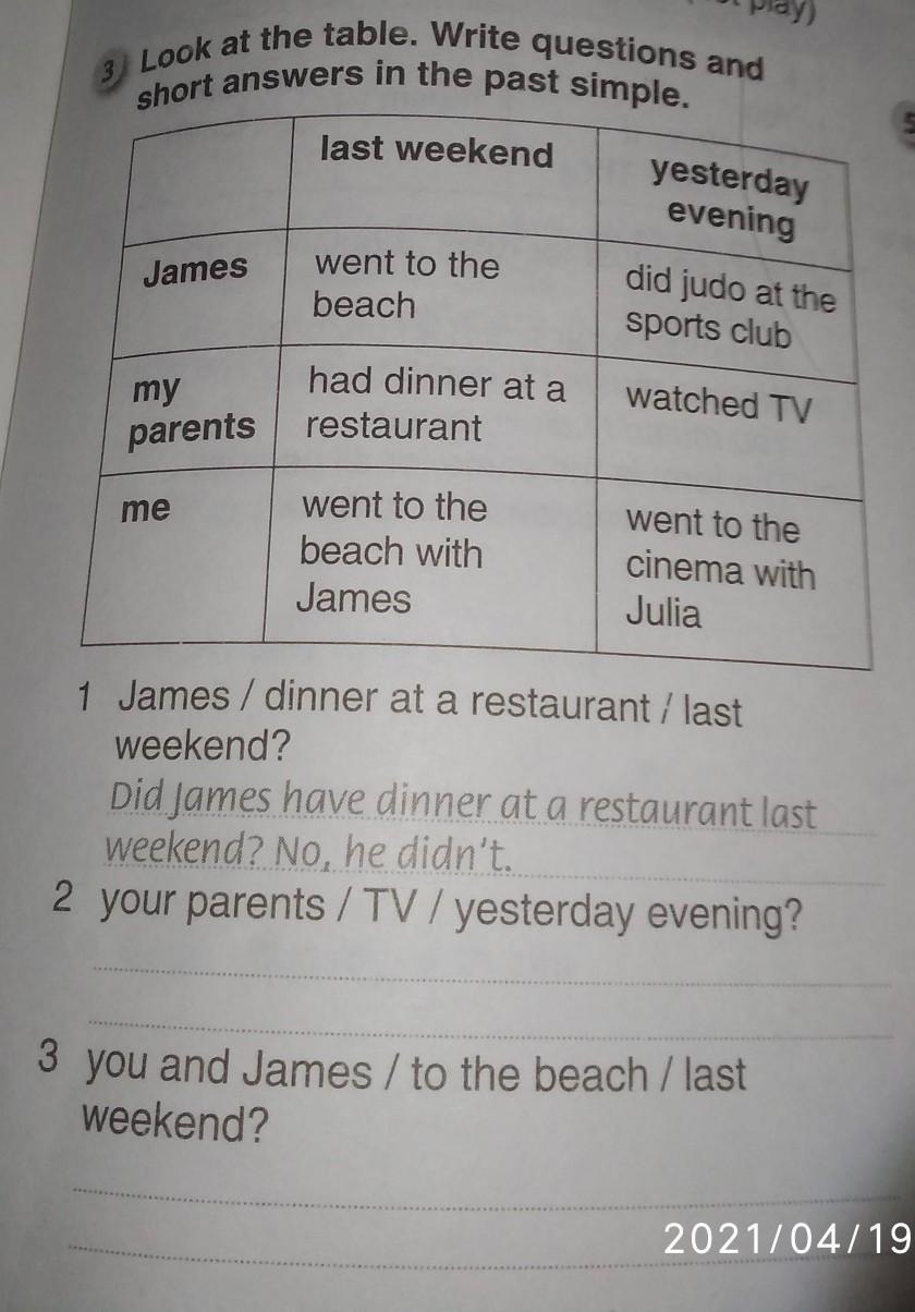 2) Did your parents watch TV yesterday evening? Yes, they did