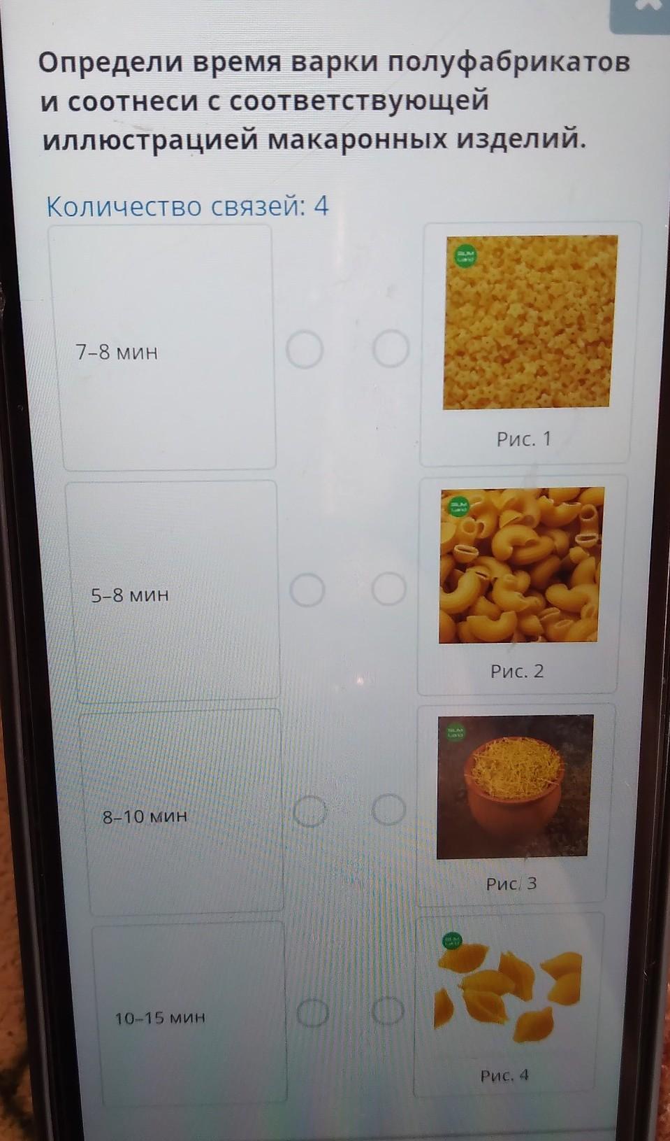 Определи время варки полуфабрикатов