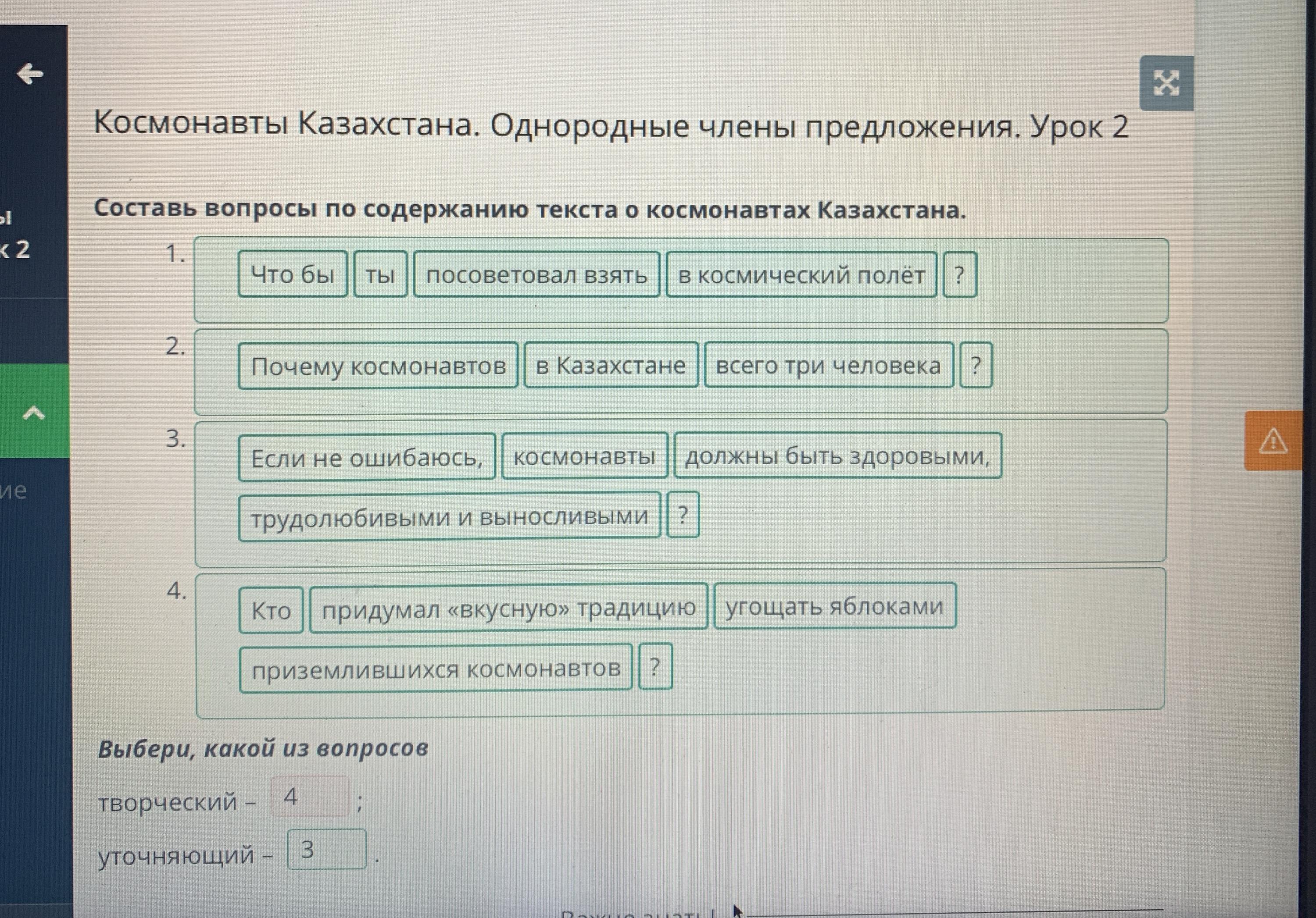 Составь вопросы по содержанию текста о космонавтах Казахстанa.