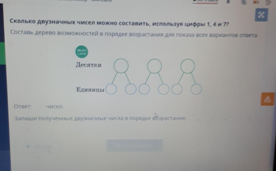 сколько двузначных чисел можно составить используя цифры 1,4 и 7 Составь дерево возможностей порядке возрастания для показа всех вариантов ответы десятки единиц Запиши полученное двузначное число в порядке возрастания