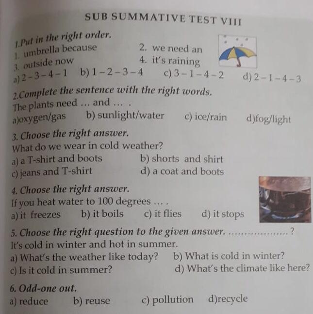 1. We need an umbrella because it's raining outside now (d) (2-1-4-3)