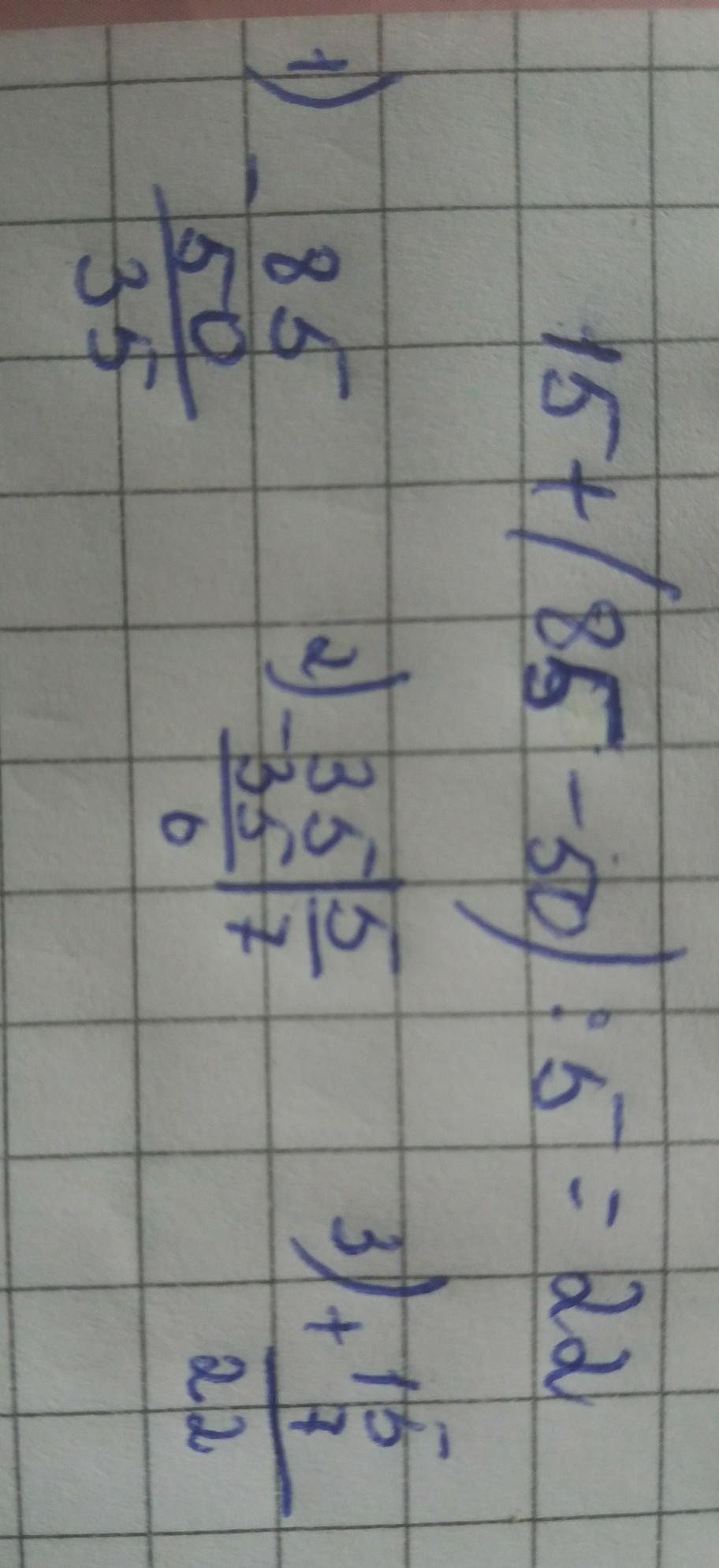 15+(85-50):5=15+35:5=15+7=22