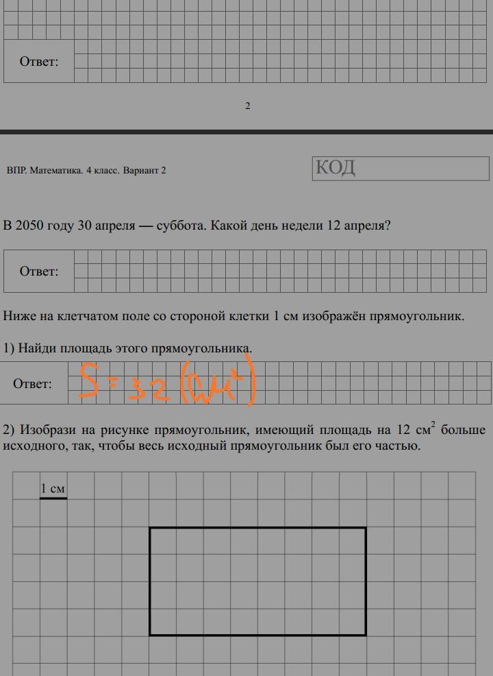 Помогите начертить прямо угольник у которого площадь равна на 12см больше. Площадь этого прямо угольника я написала.