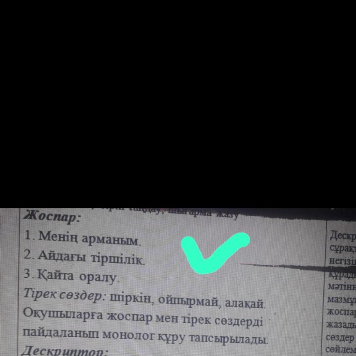 Пожайлуста помогите срочно написать монолог по теме мен ғарышкер боламын по жоспар и тірек сөздер срочноо! Заранее спасибо