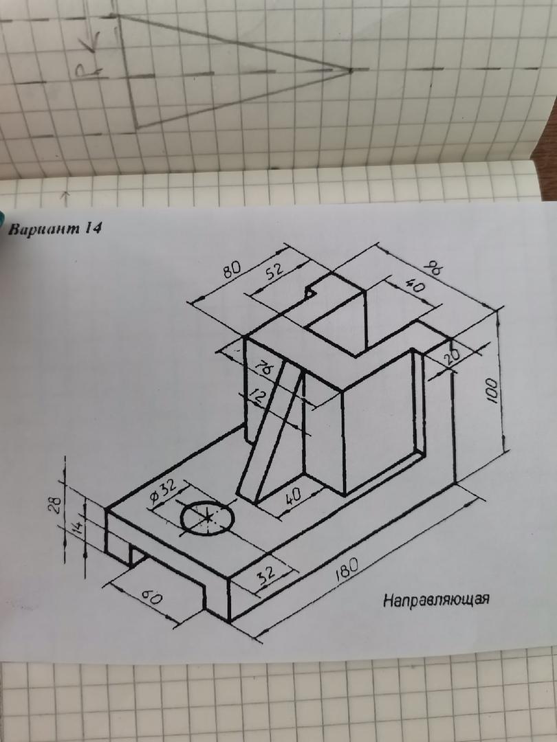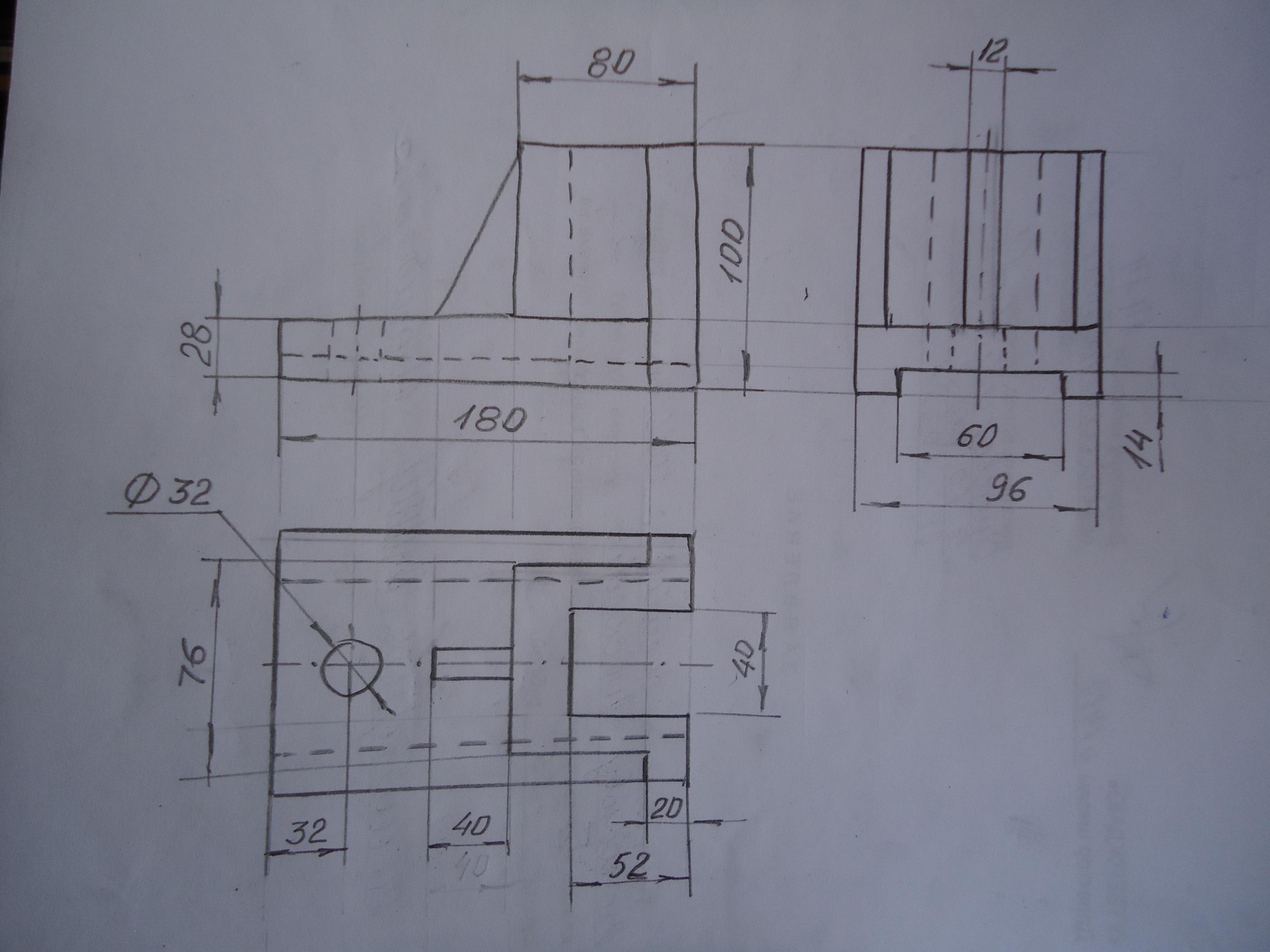 Чертёж из трёх видов, выполненный от руки с сохранением пропорций на глаз, см. на фото.