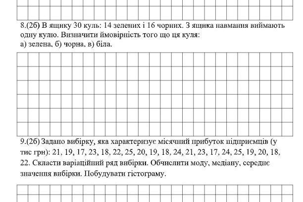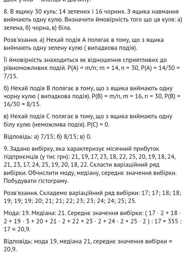 8.а)14,б)16,в)0, білий куль там немає. Тому а)14/30=7/15