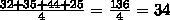 32 + 35 + 44 + 25/4 = 136/4 = 34