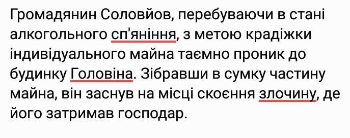 Громадянином Соловйовим було скоєно злочин за статтею 185 КК України у стані алкогольного сп'яніння.
