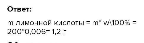 m лимонной кислоты =m*w/ 100% =200*0,006 =1,2 г