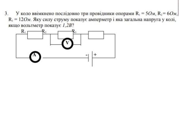 Находим силу тока в цепи: I=U3/R3=1,2/12=0,1А-показывает амперметр.