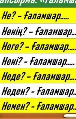 1 - тапсырма . « Ғаламшар » сөзін септеп жаз . Не ? - ғаламшар .... Ненің ? – ғаламшар ... Неге ? - ғаламшар .... Нені ? - ғаламшар .... Неде ? - Ғаламшар ... Неден ? - ғаламшар ... Немен ? - ғаламшар .....