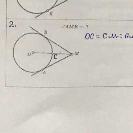 Получаем треугольник ОВМ. Он прямоугольный (так как ОВ радиус проведенный к точке касания с касательной. Следовательно угол ОВМ = 90.)