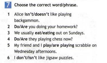 ) isn't. 2). are 3) eat 4) Are 5) play 6) don't