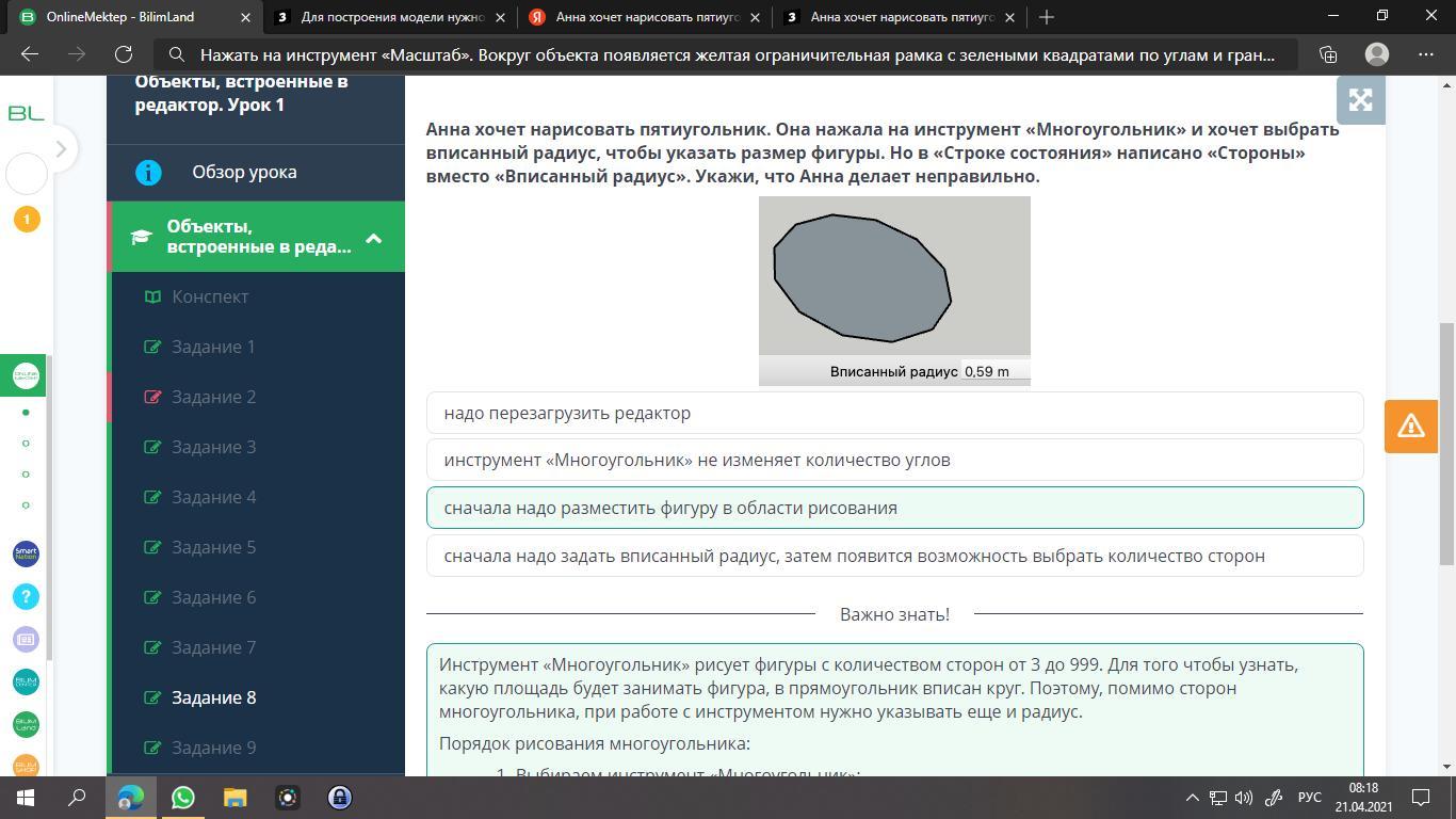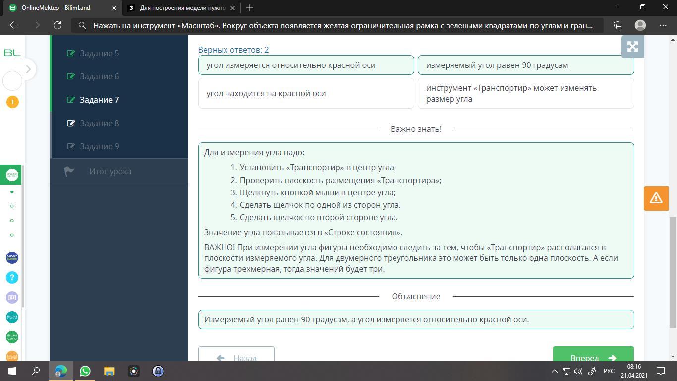 Для построения модели нужно знать угол в треугольнике. Пользователь провел измерение. Укажи,