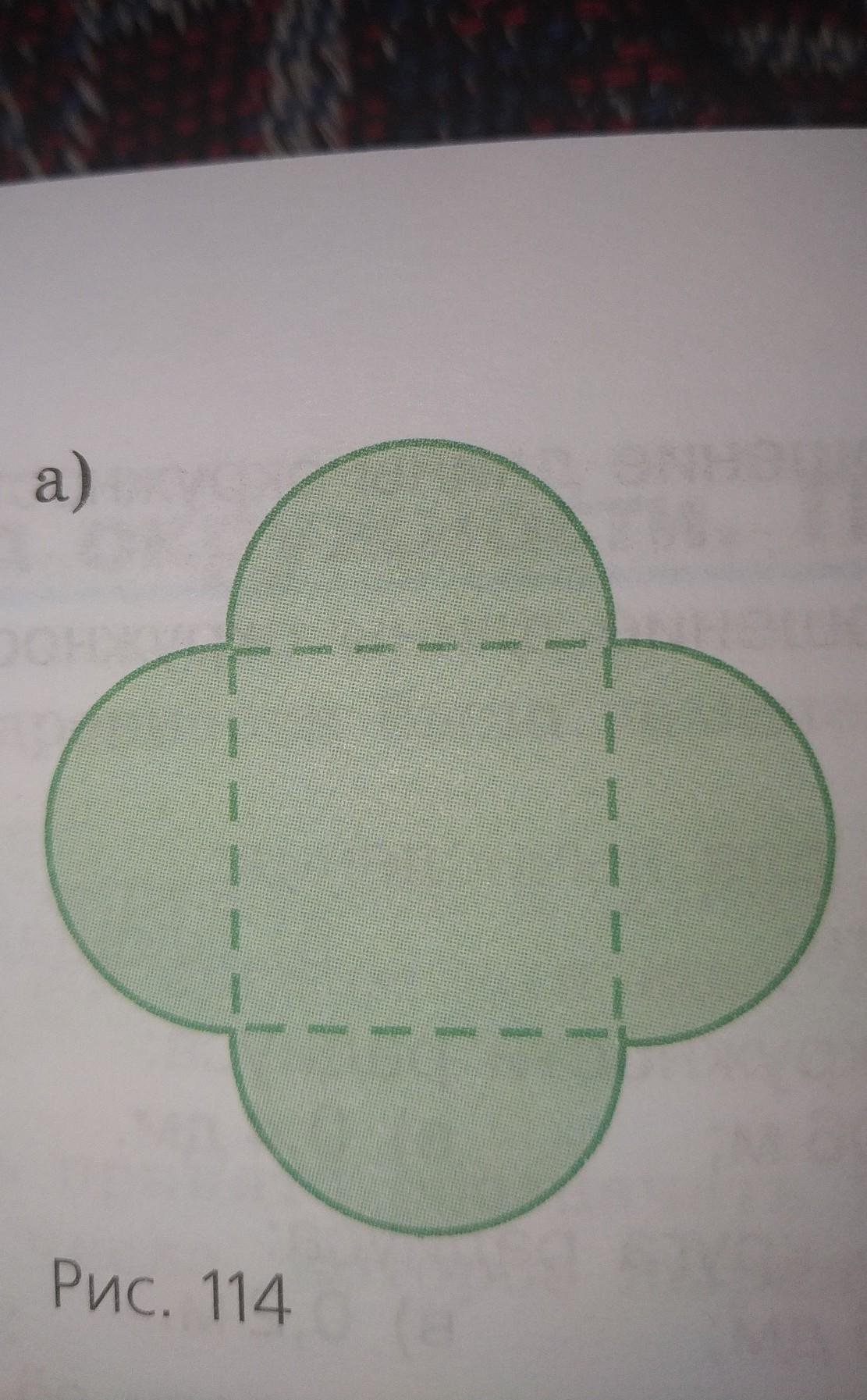 Итак фигура состоит из квадрата и четырех половин одинаковых кругов.