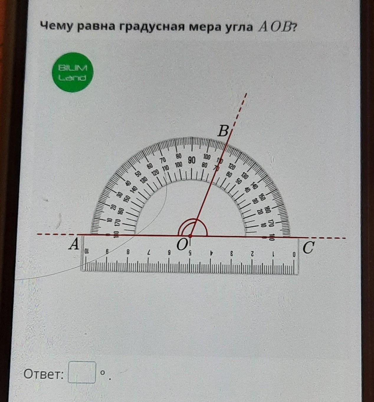 Чему равна градусная мера угла АОВ?