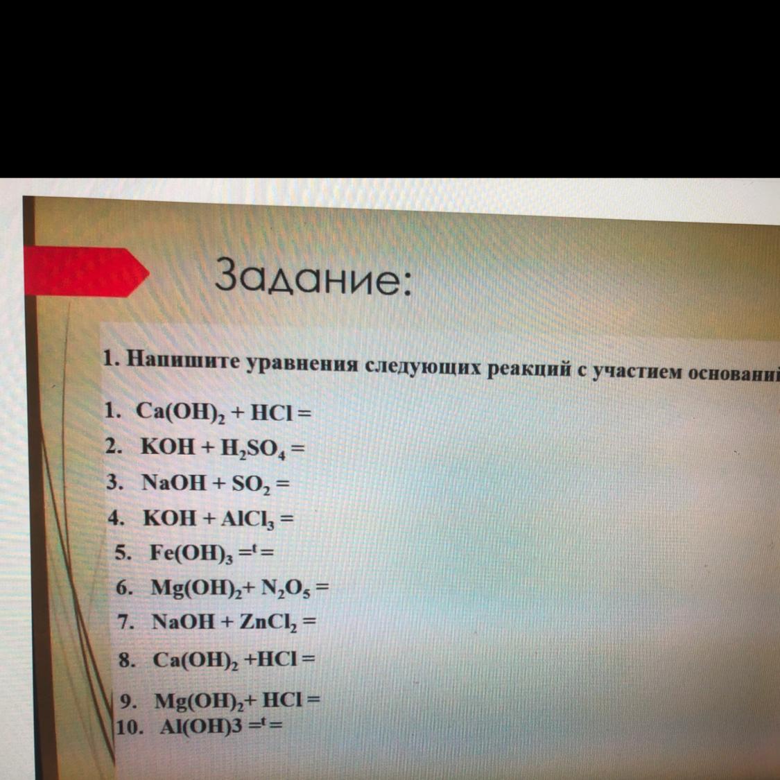 9. Mg(OH)2+2HCl=MgCl2+2H2O