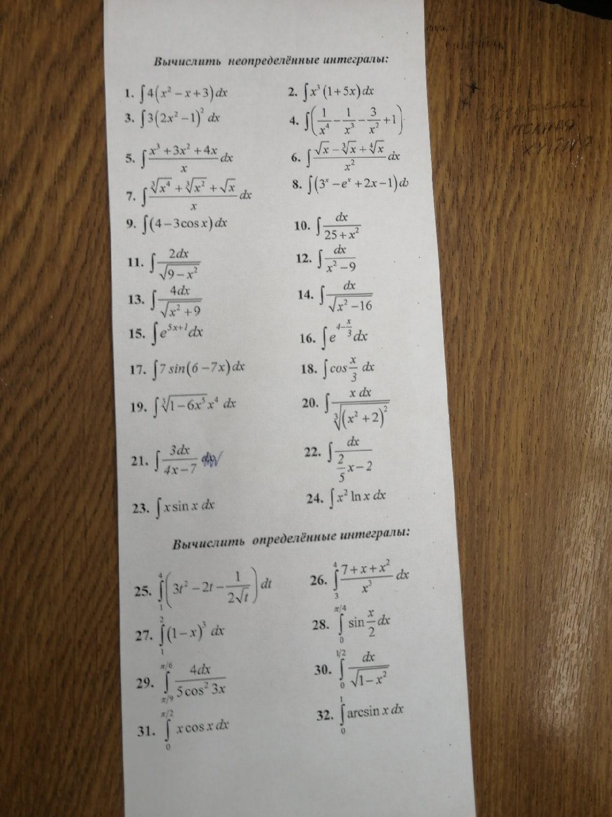 Решить интегралы 25 26 не определённые 30 интегрировприе 17-22 27-29 задача переменной 23,24,31,32 по частям