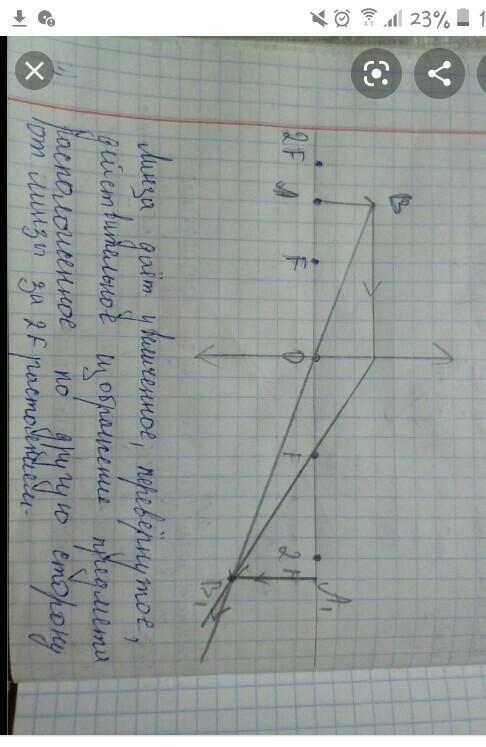 Построить изображение предмета высотой 1,5 см находящегося на расстоянии 6 см от линзы с фокусным расстоянием 4 см , указать вид изображения