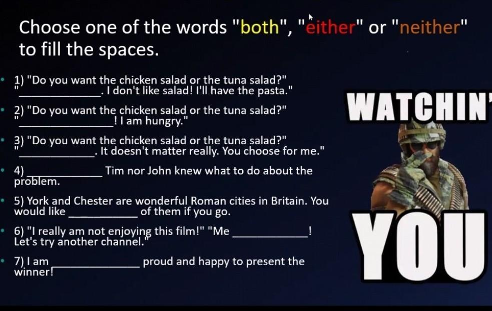 3) "Do you want the chicken salad or the tuna salad?" It doesn't matter really. You choose for me." Tim nor John knew what to do about the 4)