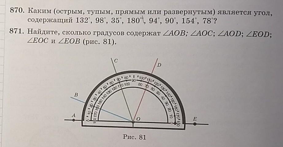 132-тупой. 98-тупой. 35-острый. 180-развёрнутый. 94-тупой. 90-прямой. 154-тупой. 78-острый.