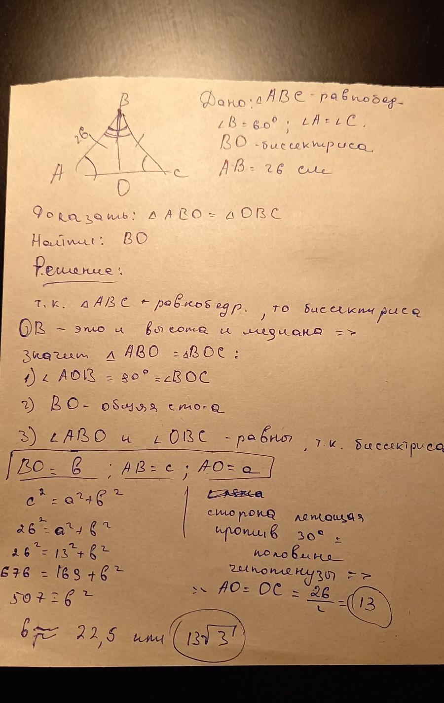 найти ВО если угол В=60° АВ=26см