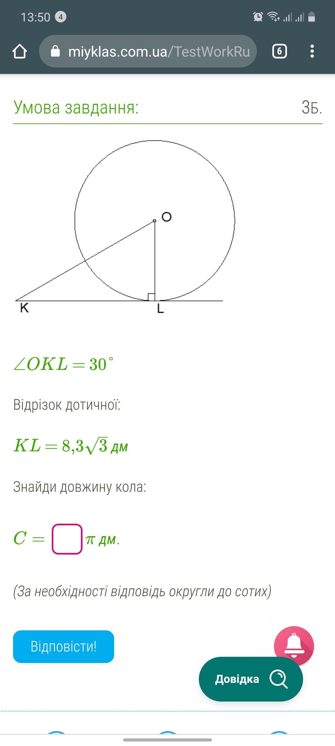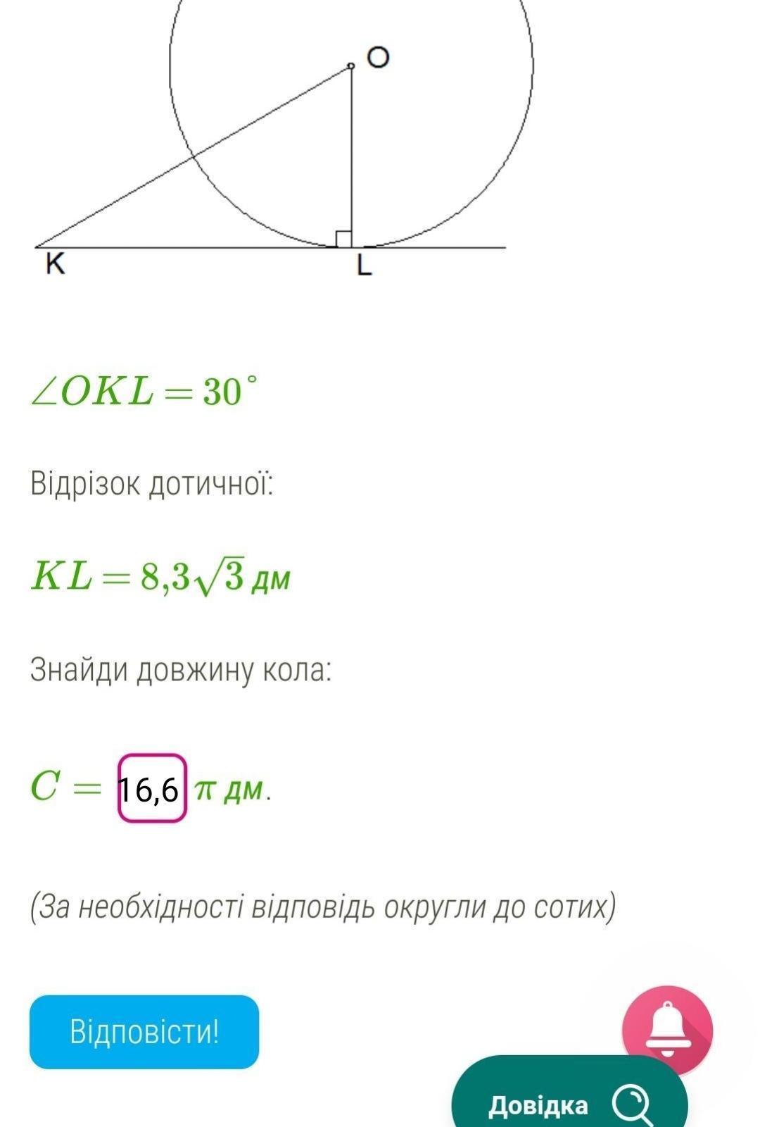 OL=8,3√3/√3=8,3 дм радиус окружности.