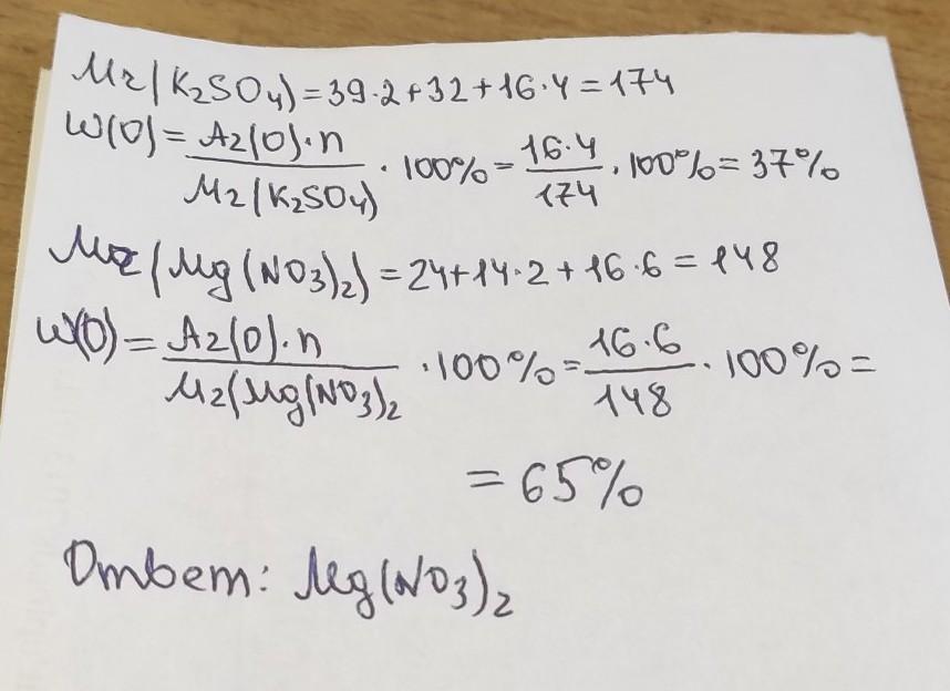 расчитайте в коком вешестве— сульфате калия или нетрате магния— масавая доля кислорода больше.(химия 7 класс Кислород.Водород)