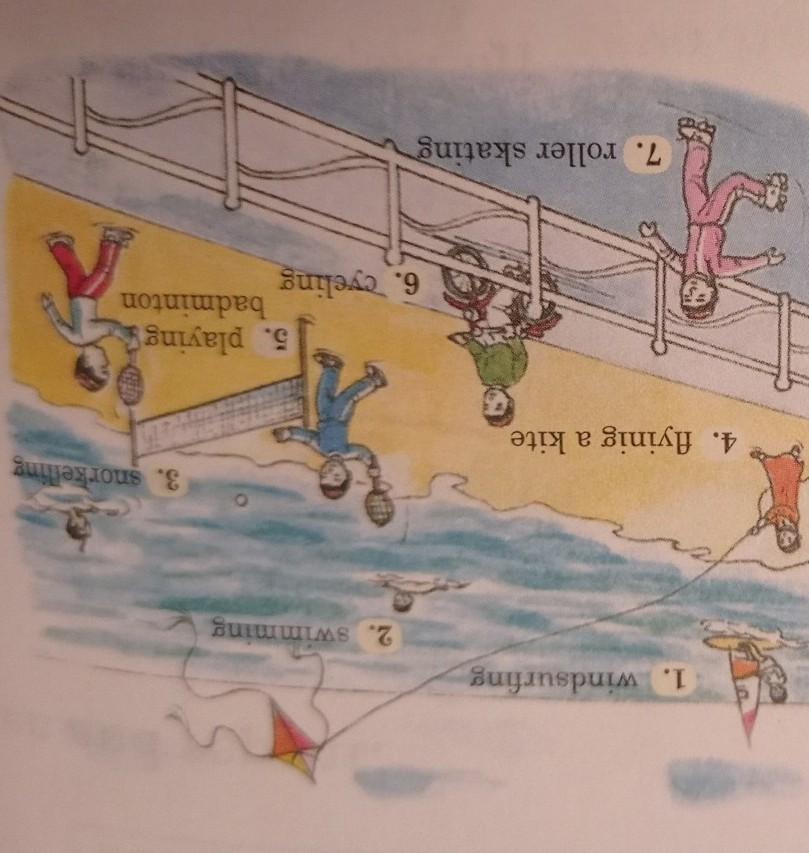 5. write what the children are doing on the beach. 1. He is windsurfing. 2. He is swimming. 3. 4. 5. 6. 7.