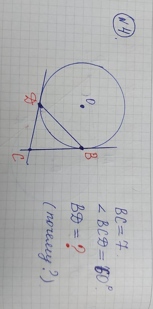 BC=DC(по св-ву касательных, проведенных из одной точки) => ΔDCB - равнобедренный => ∠CBD =∠CDB = (180° - 2∠BCD) / 2 = 120° / 2 = 60° => ΔDBC - равносторонний => BD = CD = DC = 7