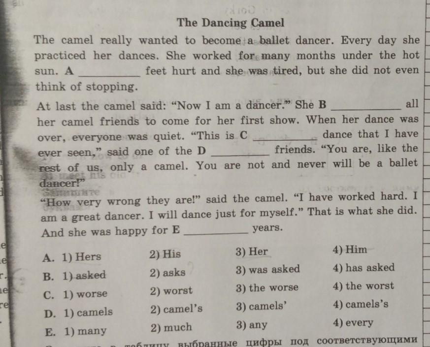 прочитайте текст и вставьте вместо каждого пропуска нужную грамматическую форму выбрав её из четырёх предложенных вариантов