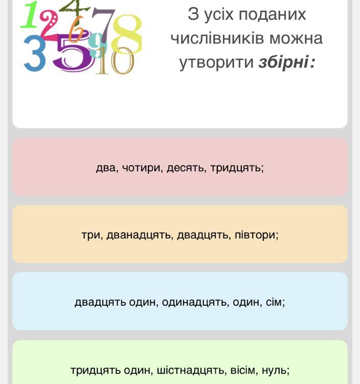 Збірні числівники можна утворити від 1 до 20 та 30