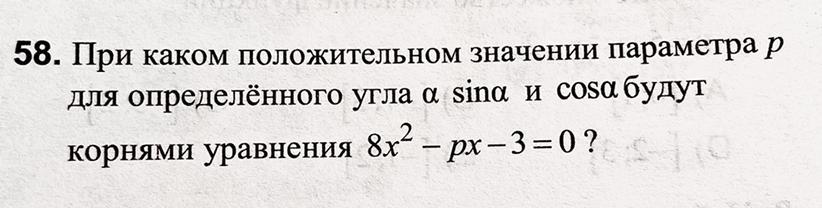 ⇒ р = 4 или р = - 4 . При данных значениях р корни уравнения будут для определенного угла sina и cosa. Поскольку спрашивают положительное значение параметра, окончательный ответ р = 4