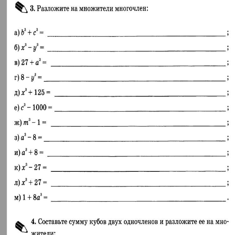 4) 2³-y³= ( 2-y) (2²+2y+y²)