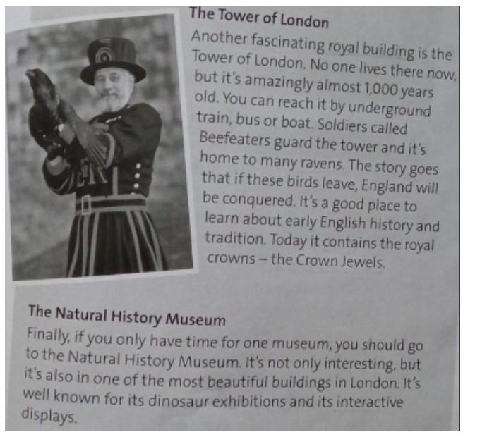 4. Which part of Buckingham Palace can you visit? 5. What type of birds lives in the Tower of London?