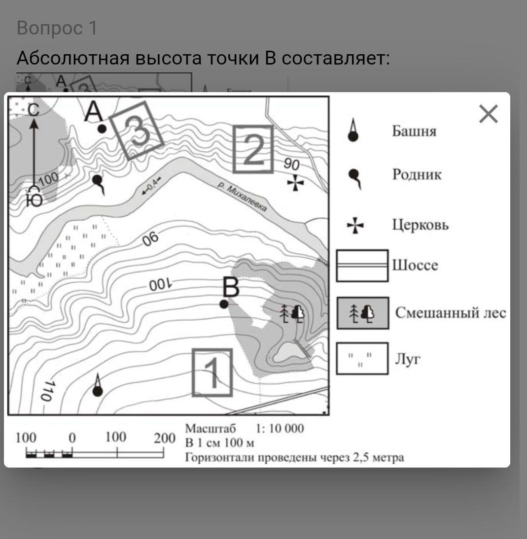 Абсолютная высота точки B составляет:
