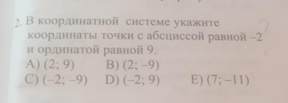 координаты точки с абсциссой равной -2 и ординатой равной 9.