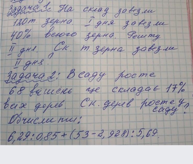 в первый день завезли 40%, значит во второй день завезли 60%, т.е. 0,6 всего зерна.