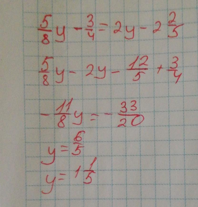 5/8у-3/4=2у-2целых 2/5