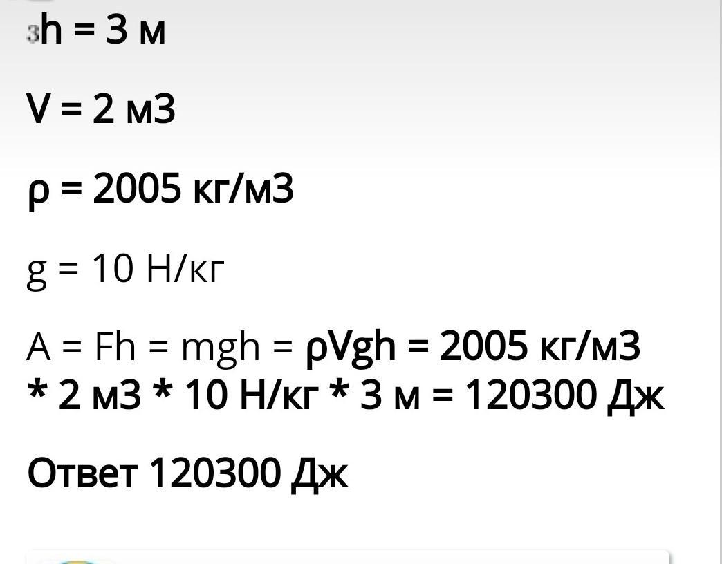 На высоту 3 м подъёмный кран поднимает 3 м^3 цементного раствора, плотность которого равна 2097 кгм3, (g=10 мс2).