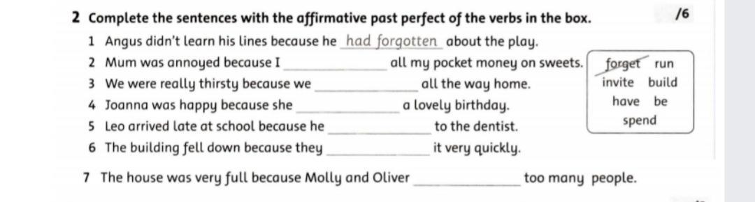 Complete the sentences with the affirmative past perfect of the verbs in the box.