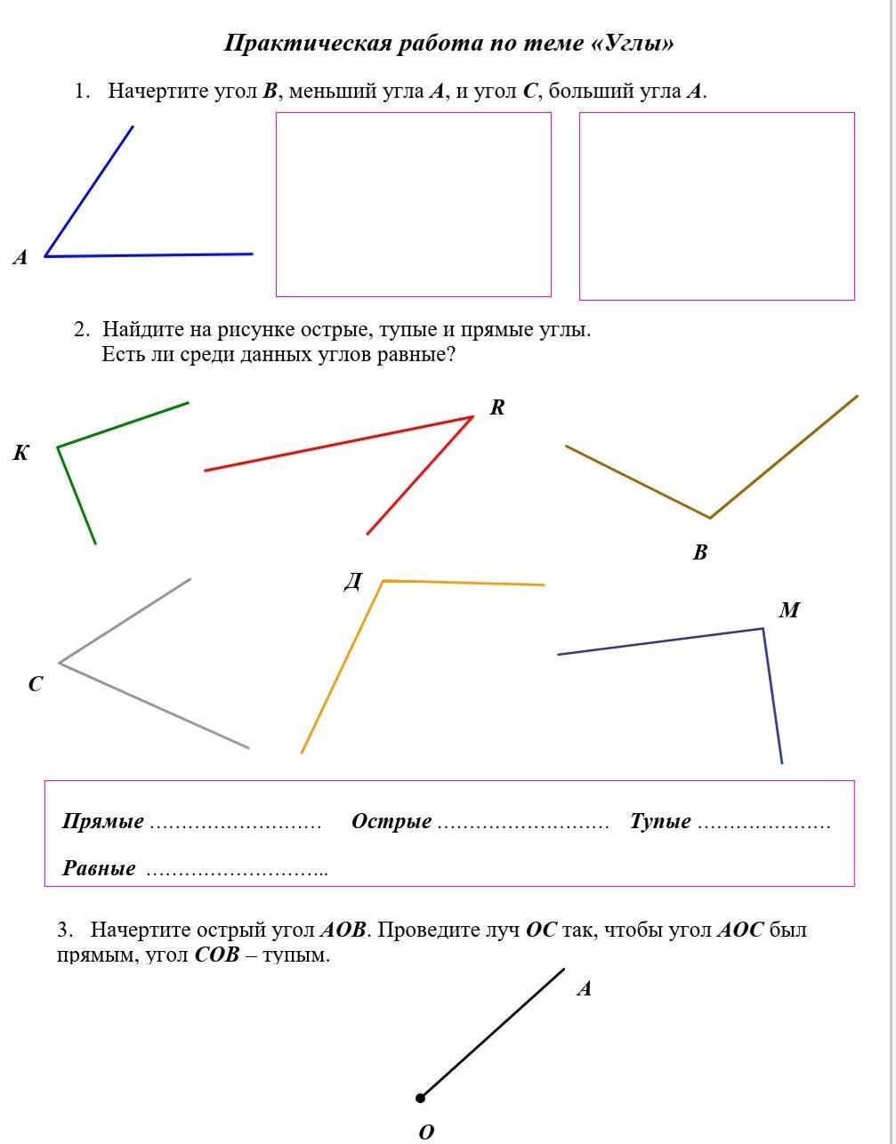 Номер 2:Прямые: M и K,Острые:R и C,Тупые:Д и В.,Равные M и K