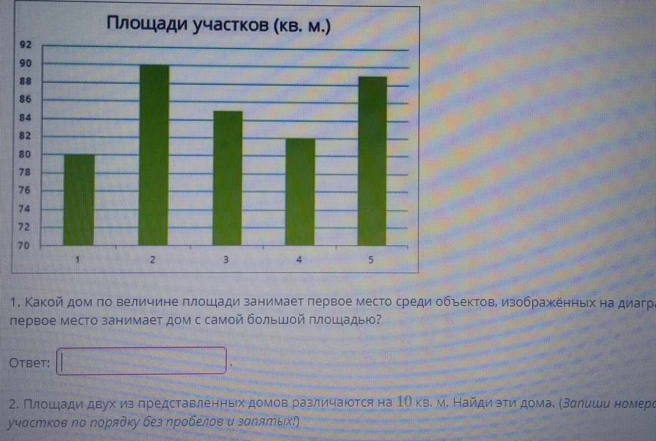 На диаграмме представлены площади нескольких домов. Пользуясь диаграммой, ответы на вопросы.