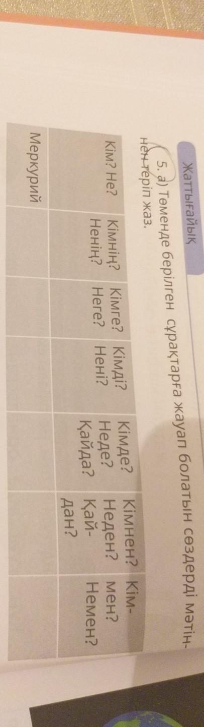 5. а) Төменде берілген сұрақтарға жауап болатын сөздерді мәтін