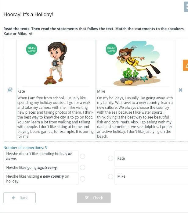 Read the texts. Then read the statements that follow the text. Match the statements to the speakers, Kate or Mike.