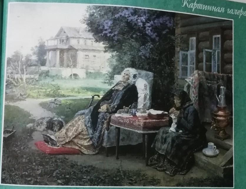 Бабушки сидят около своей избушке любуясь природой , одна вяжет другая отдыхает , но видно что 1 Бабушка нуждается в деньгах и а второй все не по чем