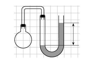 Возьмем уровень нижний, горизонтальный, отмеченный на рисунке. В левом колене давление создается только давлением газа в колбе. В правом давлением столбика бензина + атмосферным давлением. По закону сообщающихся сосудов они равны.
