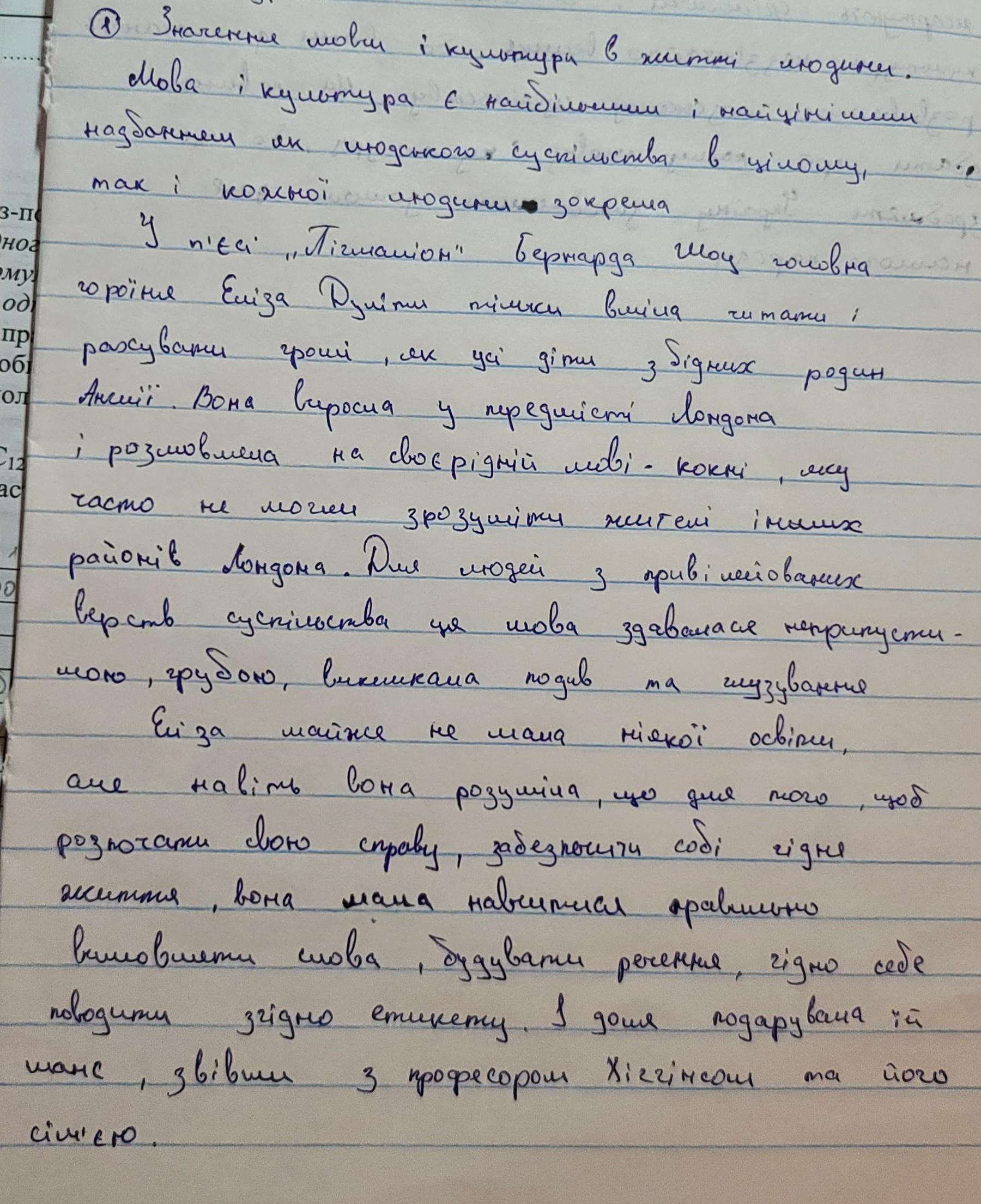 Твір на тему: "Значення мови й культури в житті людини", за пьєсою "Пігмаліон" Б.Шоу.