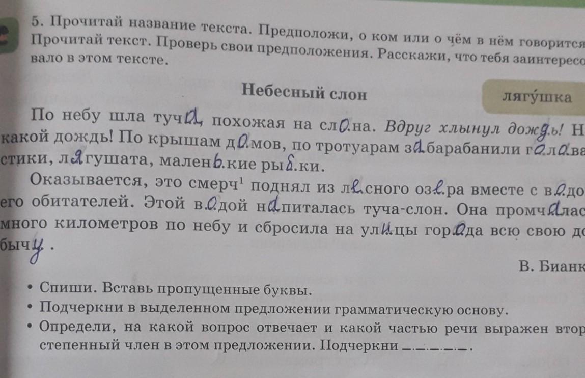 Прочитай название текста предложения О ком или о чём в нём говорится Прочитай текст проверь свои предложения Расскажи что тебе заинтересовало в этом тексте